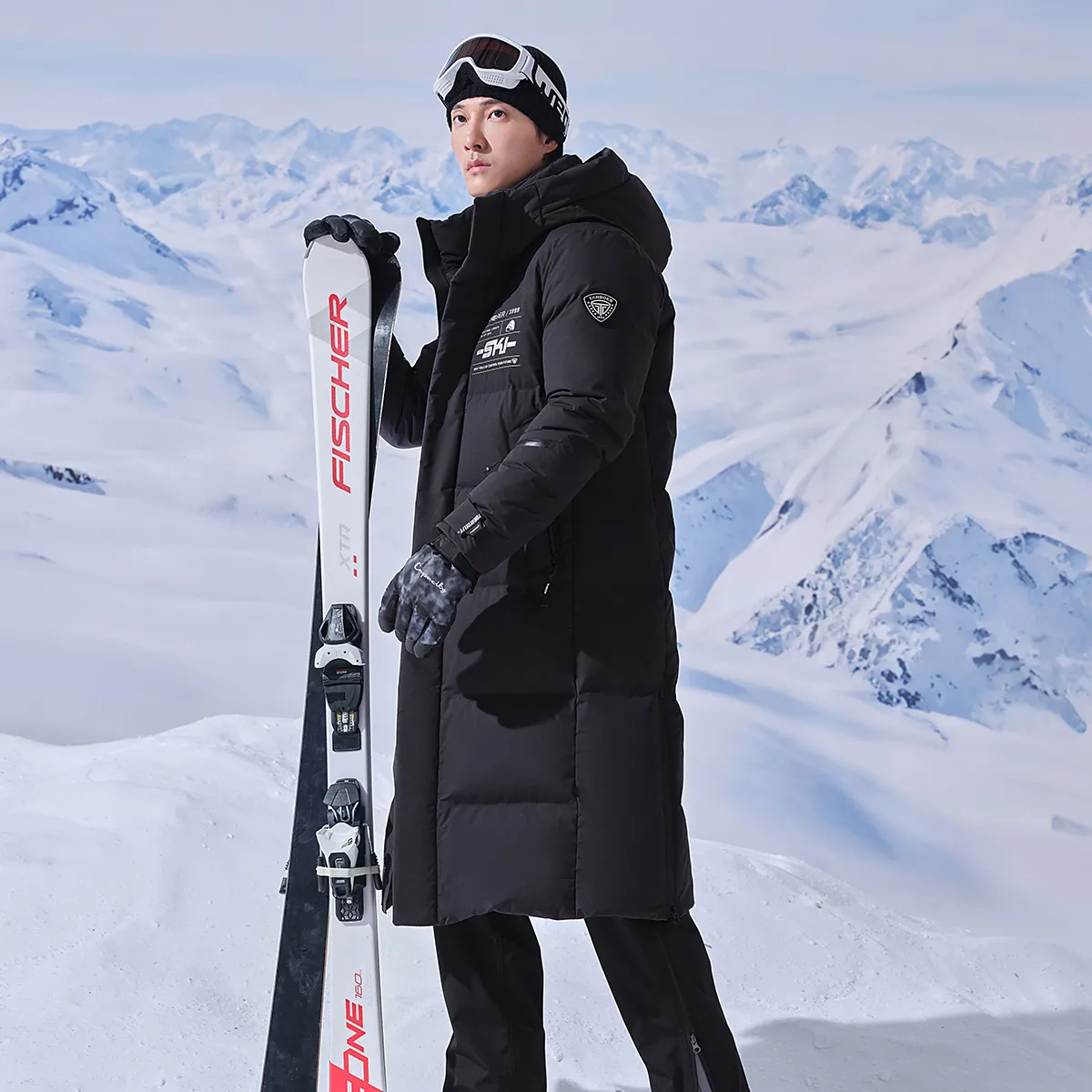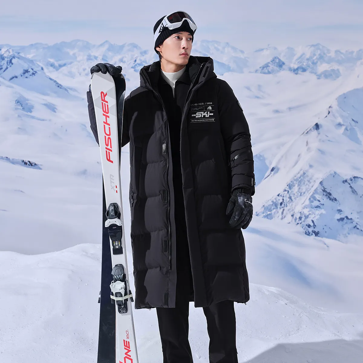 Custom Outdoor Sports Long Hooded Winter Warmth Goose Down Jacket Windproof Waterproof Breathable Skiing Wear
