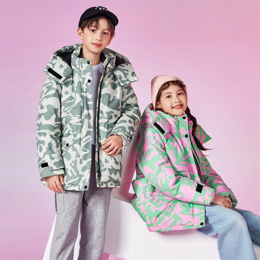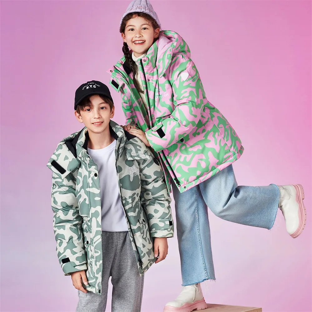 Stylish Camouflage Design: This children’s parka down jacket features a trendy camouflage pattern, adding a cool and fashionable touch to your little one’s winter wardrobe.