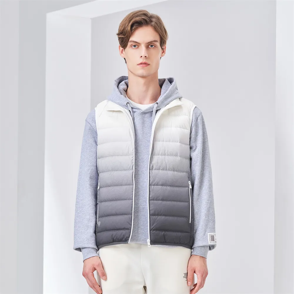 Men’s lightweight short casual fashion stand collar gradient down vest